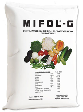 MIFOL-G es una fórmula equilibrada de elementos menores y micronutrientes, que requieren los cultivos en momentos críticos de su vida vegetativa, crecimiento, floración y formación de frutos o semillas.